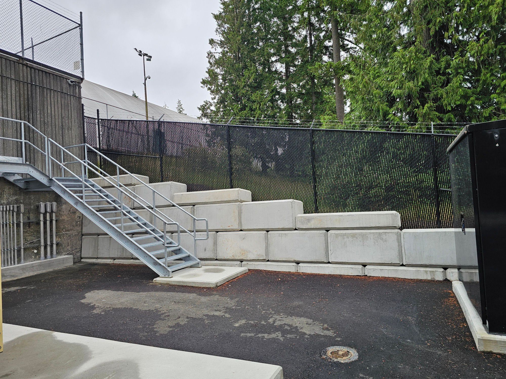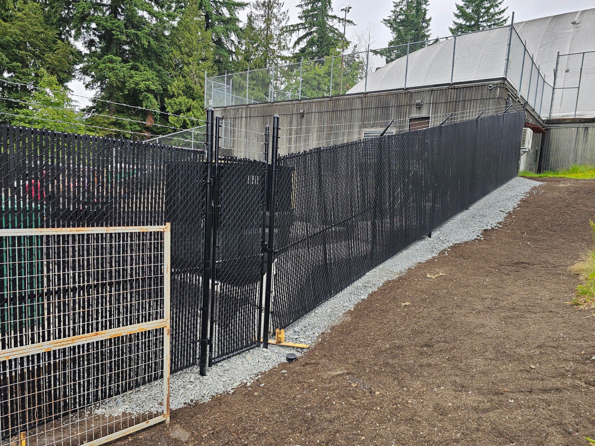 On behalf of Westport Construction, we supplied and installed 185′ of vinyl-coated chain link with accompanying privacy slats at the Foster Pump Station. Measuring 8′ tall, this fence meet MMCD C13 specs, including 9 ga mesh and sched. 40 pipe.